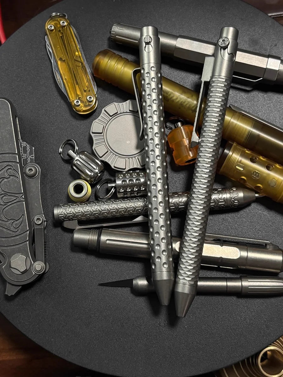 Collectible Item: With its unique design and high-quality craftsmanship, it's a valuable collectible item.,Multi-functional Tool: Beyond writing, this pen serves as a versatile outdoor tool, perfect for various tasks.,High-Quality Refill: Equipped with a G2 refill, ensuring smooth and consistent writing performance.,Portable Design: At just 142mm in length and weighing only 39g, it's a sleek, pocket-sized writing tool.,Titanium Alloy Material: Crafted from durable titanium alloy TC4, this pen offers exceptional strength and longevity.